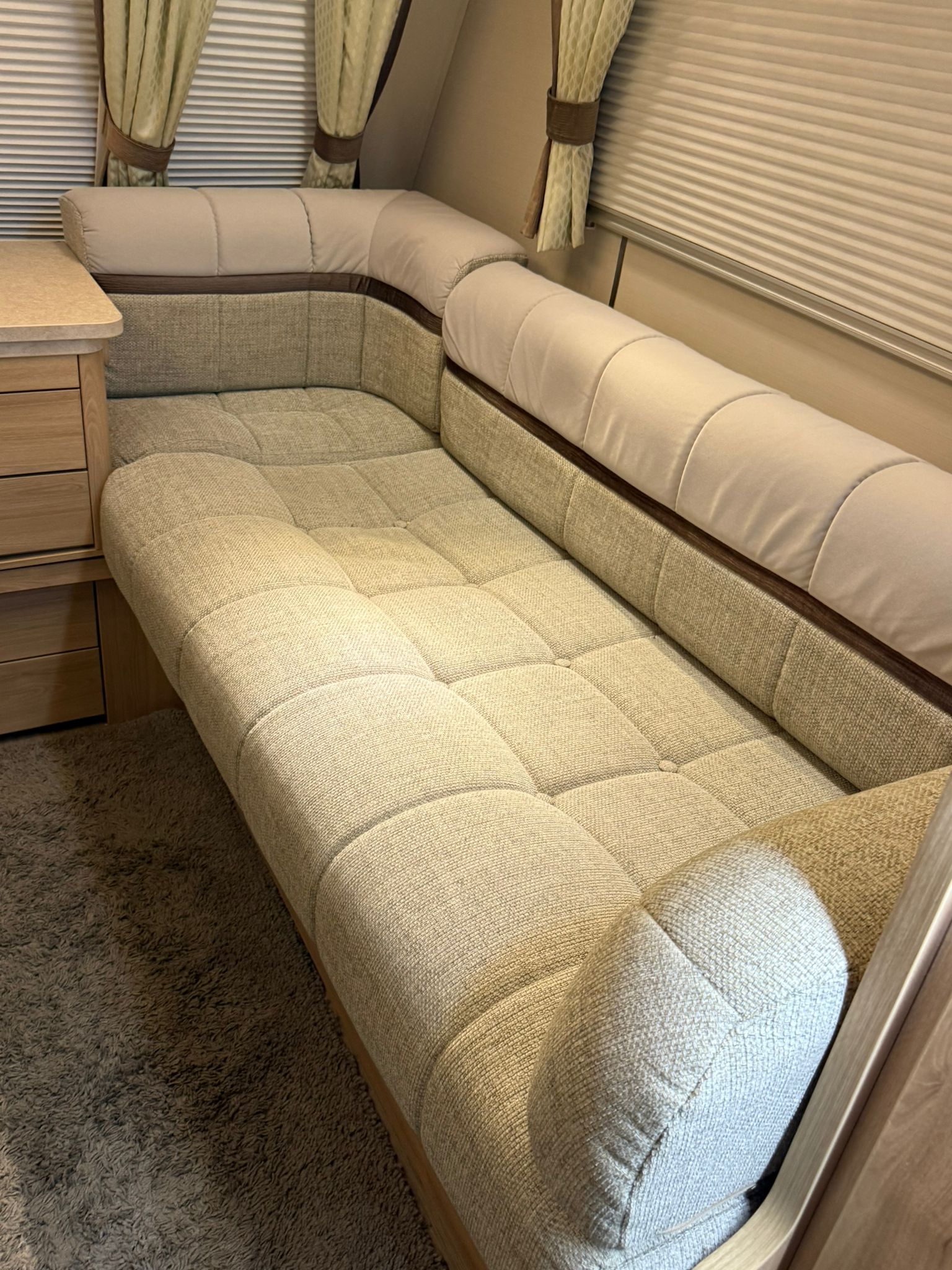 This Crusader Super Storm is finished to an exceptional standard and comes with Alde central heating, the stability of a twin-axle chassis, and motor movers for easy manoeuvring on site — making it an ideal choice for year-round comfort and long-distance adventures.