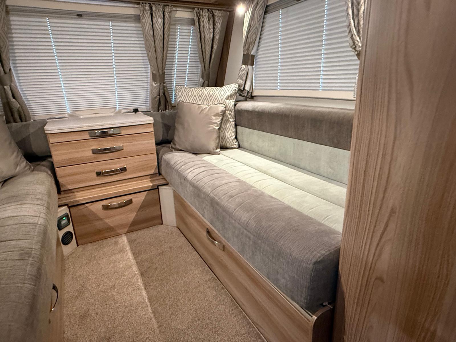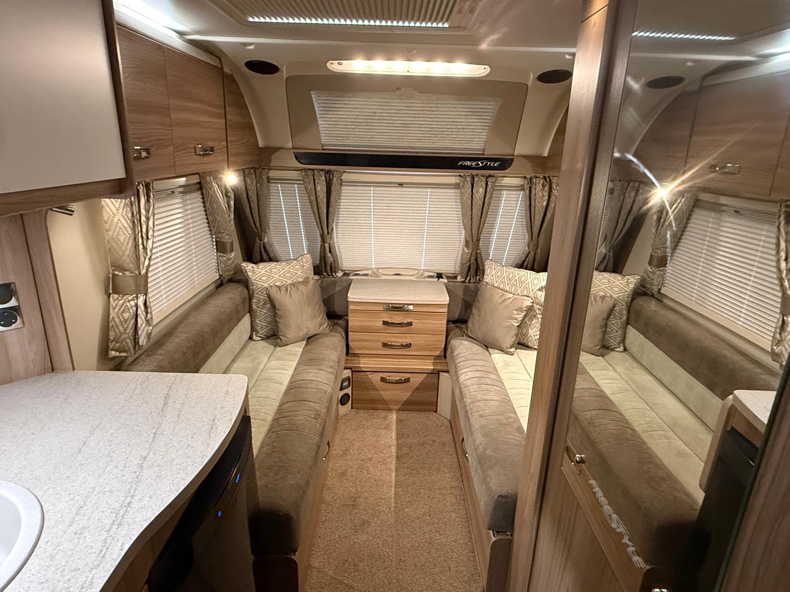 The Swift Freestyle 6TD is a versatile 6-berth single-axle caravan, offering a practical and family-friendly layout with flexible sleeping options.