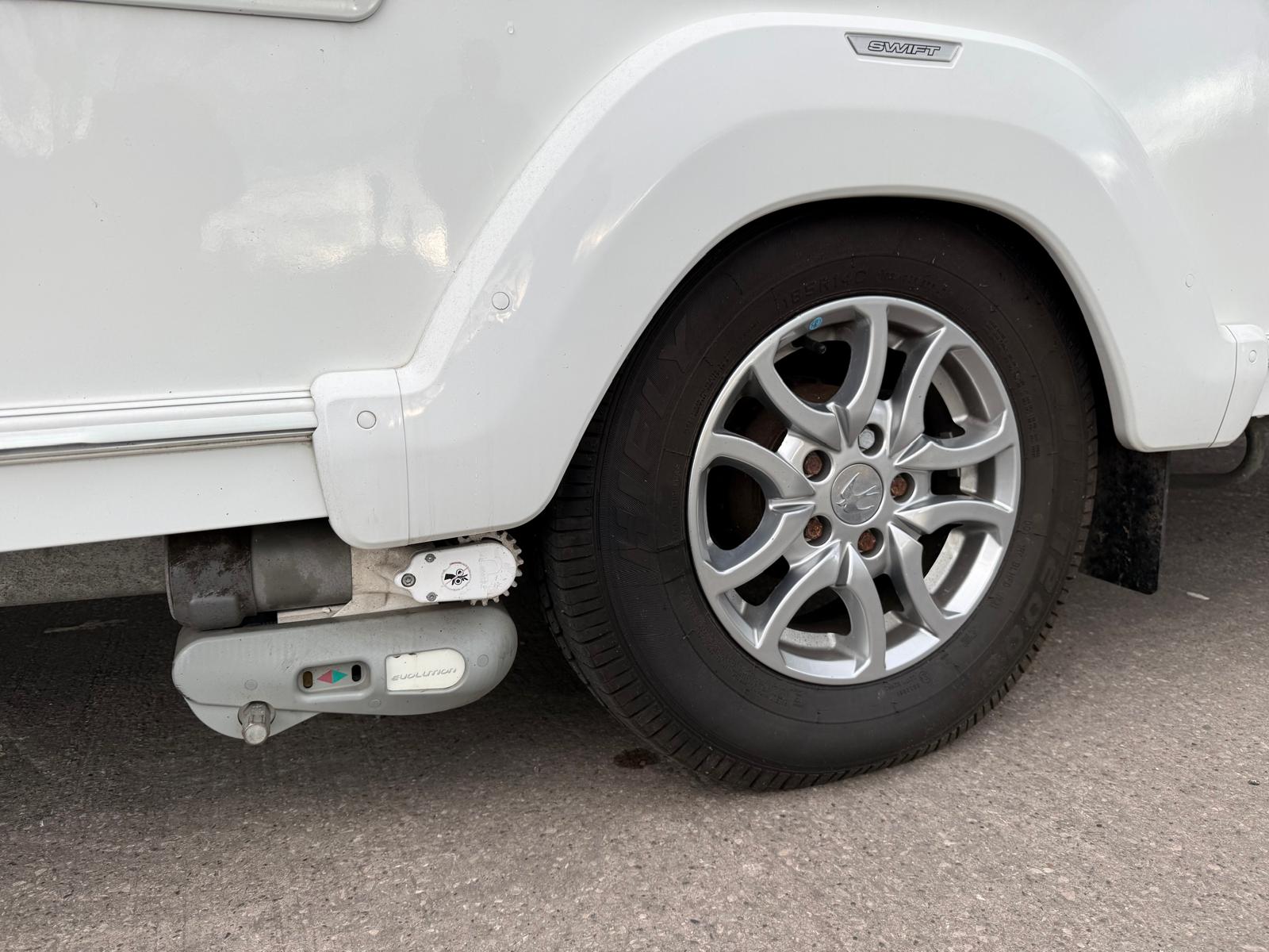 This example includes Truma heating, motor movers for easy manoeuvring, and ATC (AL-KO Trailer Control) for enhanced towing stability — making it a great choice for safe, comfortable family touring.